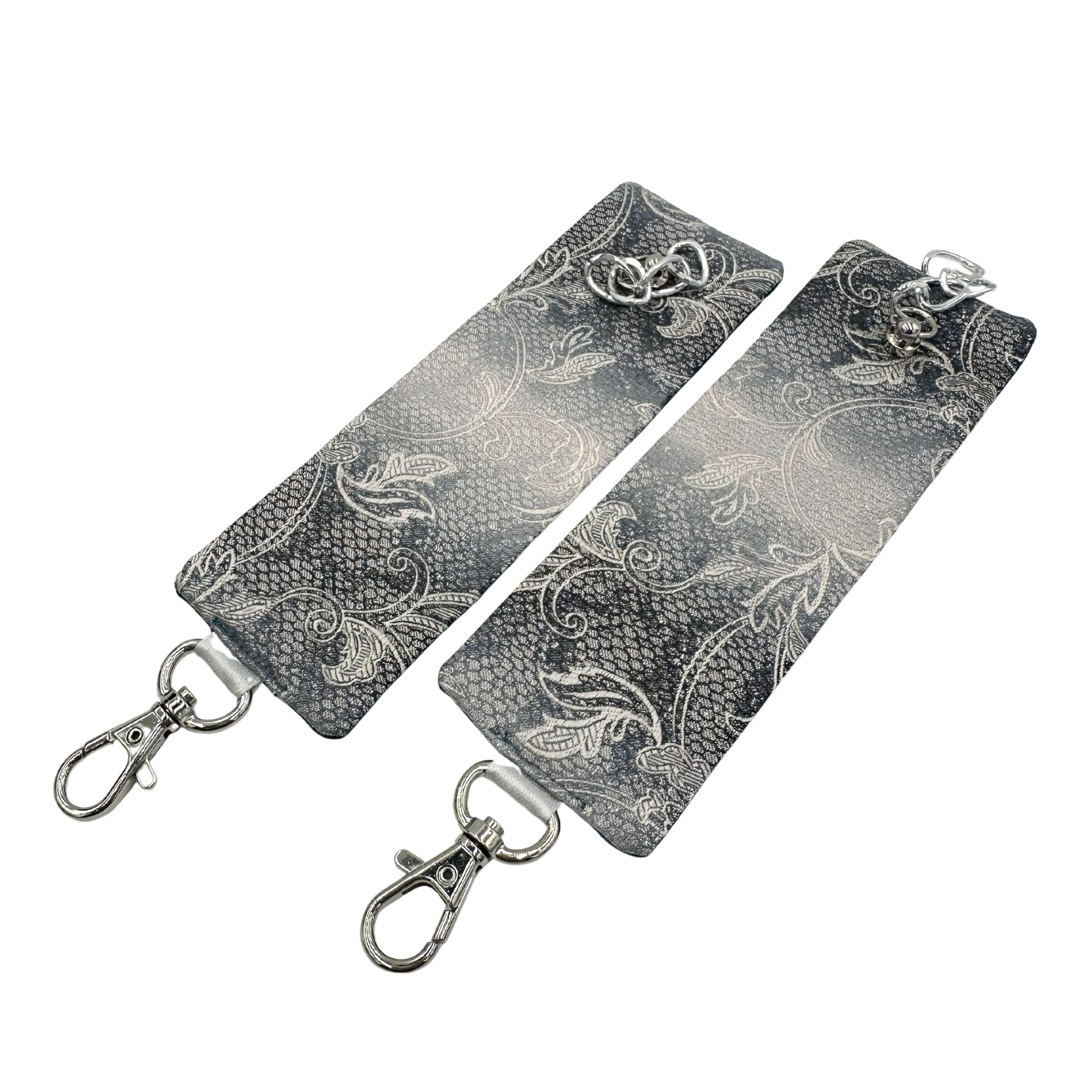 Subtelne , przyjemne w dotyku bransolety, delikatne dla ciała i udekorowane oryginalnym wzorem, łączą się ze sobą dzięki solidnym karabińczykom. Całość dopełnia połyskujący łańcuszek, tworząc zmysłowy zestaw pełen klasy i wyrafinowania.