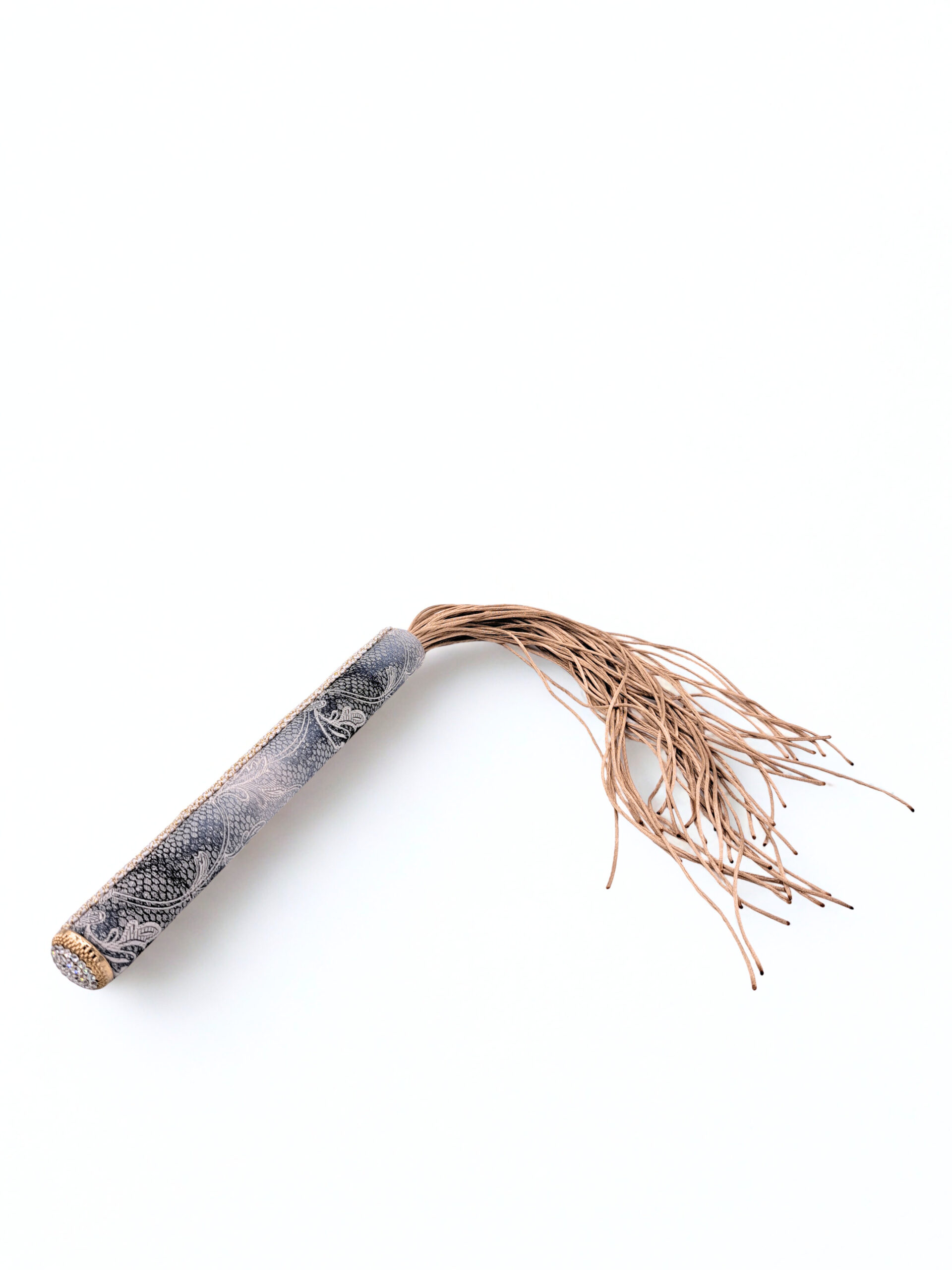 Każdy egzemplarz tworzony jest ręcznie w Atelier Minou, z biżuteryjną precyzją i dbałością o komfort. Używamy różnych końcówek dla różnorosnych doznań. Od łągodnych frędzelków, przez stanowcze sznurki woskowane i klasyczne rzemyki aż po niecierpiące sprzeciwu łańcuszki. Bogato zdobione rączki cieszą oko czyniąc z niego nie tylko gadżet erotyczny, ale i piękny obiekt artystyczny.